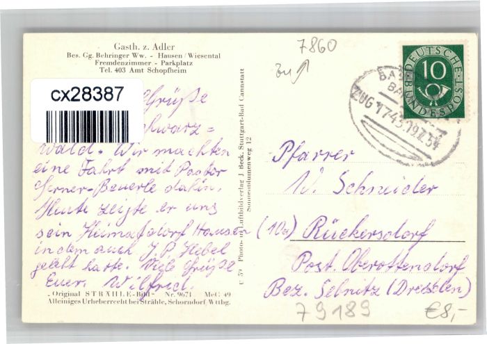 30910550 alte Postkarte Raitbach Hausen Baden Fliegeraufnahme Gasthaus zum Adler postalisch gelaufen KatCode: