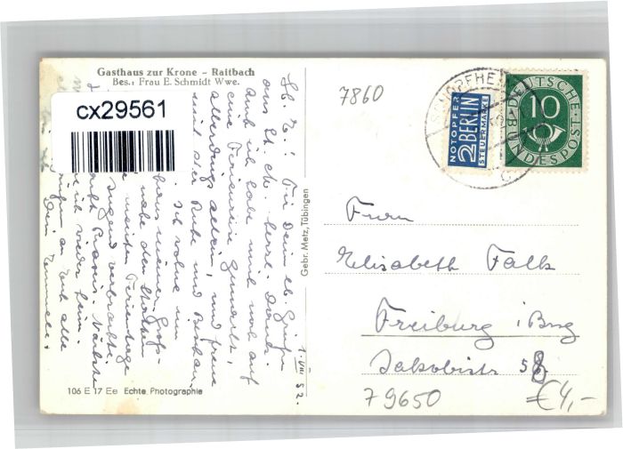 30924192 alte Postkarte Raitbach postalisch gelaufen KatCode: