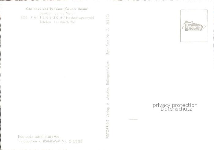 72313241 Raitenbuch Lenzkirch Fliegeraufnahme Gasthaus Pension Gruener Baum postalisch nicht gelaufen Erhaltung siehe scans KatCode: 11110008315068