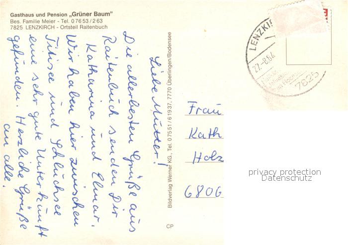 73070788 alte Postkarte Raitenbuch Lenzkirch Gasthaus Pension Gruener Baum postalisch gelaufen Erhaltung siehe scans [FriedD77] KatCode: 11110008315068