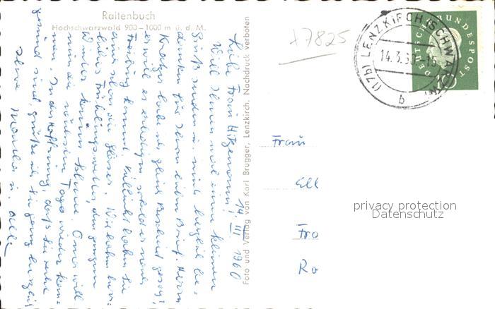 41811522 alte Postkarte Raitenbuch Lenzkirch Windgfaellweiher Berge postalisch gelaufen Erhaltung siehe scans KatCode: 11110008315068