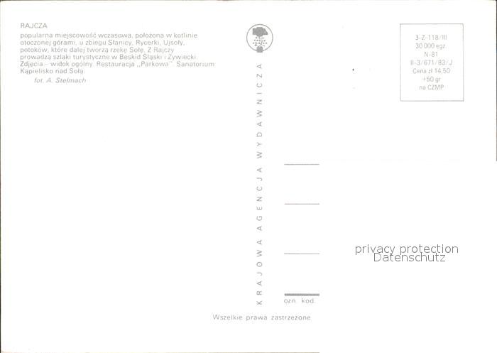 Rajcza Z Rajczy prowadza szlaki turystyczne w Beskid Slaski i Zywiecki Zdjecia widok ogolna Restauracja Parkowa Sanatoriu Kapielisko nad Sola postalisch nicht gelaufen