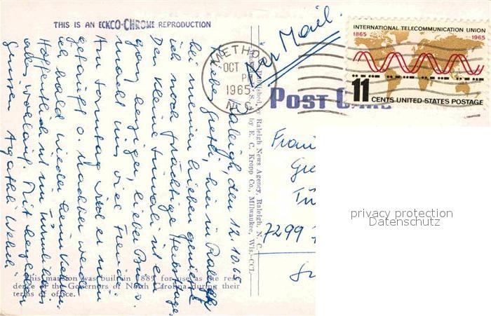 72892133 old postcard Raleigh North Carolina Governors Mansion postalisch gelaufen Erhaltung siehe scans [FriedD77] KatCode: 14140350000000