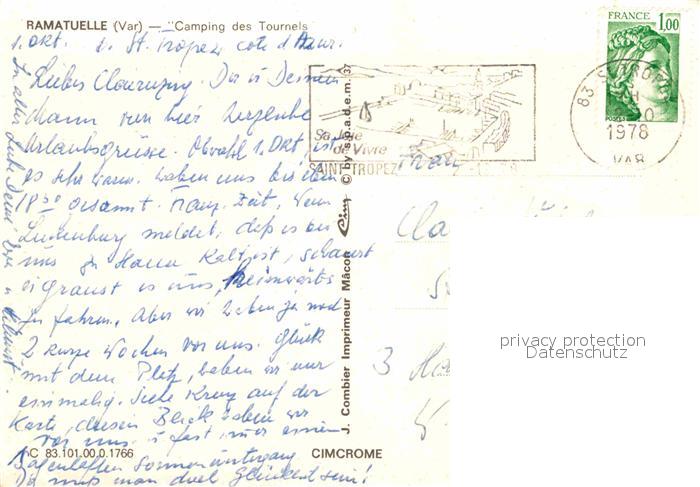 12880867 carte postale Ramatuelle Camping des Tournels postalisch gelaufen Erhaltung siehe scans [KathaD81] KatCode: 11170083183101