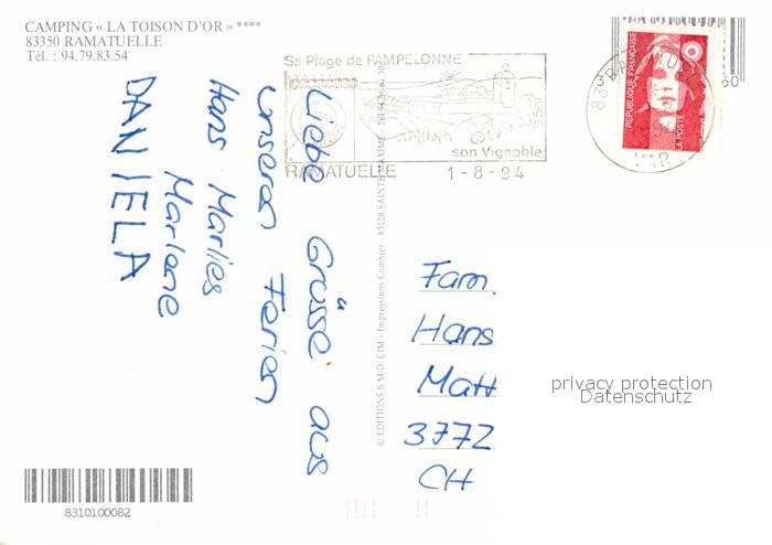 12618329 carte postale Ramatuelle Camping La Toison d Or Plage vue aerienne postalisch gelaufen Erhaltung siehe scans [FriedD77] KatCode: 11170083183101