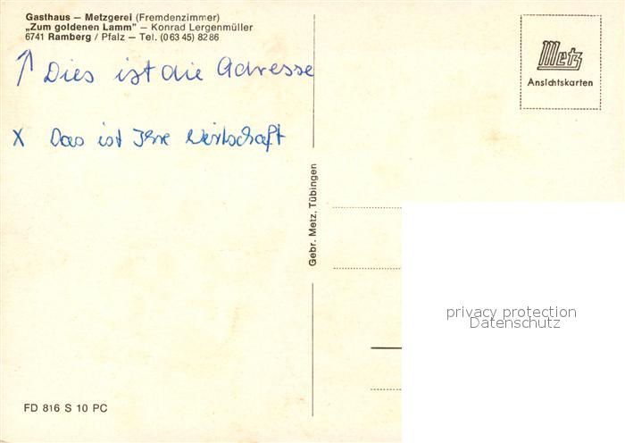 73324292 Ramberg Gasthaus Metzgerei Zum goldenen Lamm Landschaftspanorama postalisch nicht gelaufen Erhaltung siehe scans [FriedD77] KatCode: 11110007337064