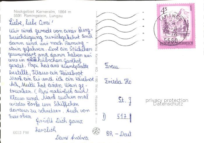 72234504 alte Postkarte Ramingstein Alpengasthof Karneralm postalisch gelaufen Erhaltung siehe scans KatCode: 11390321050506