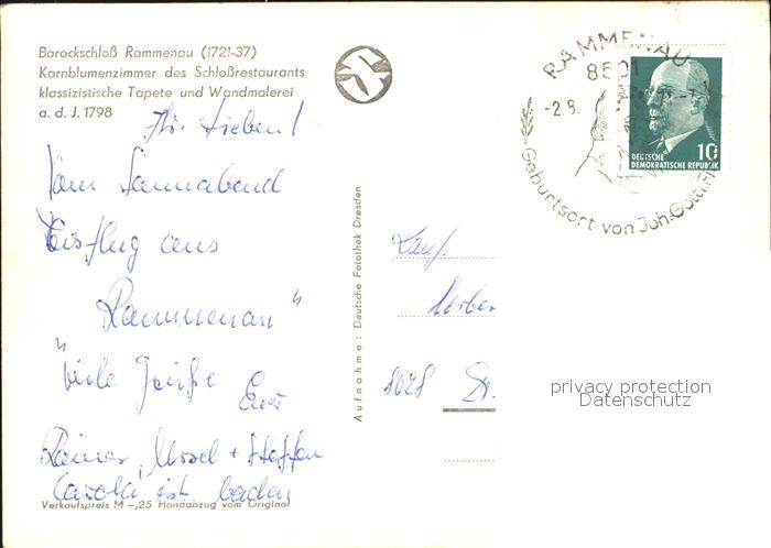 72446367 alte Postkarte Rammenau Barockschloss Kornblumenzimmer Schlossrestaurant postalisch gelaufen Erhaltung siehe scans KatCode: 11110014272290