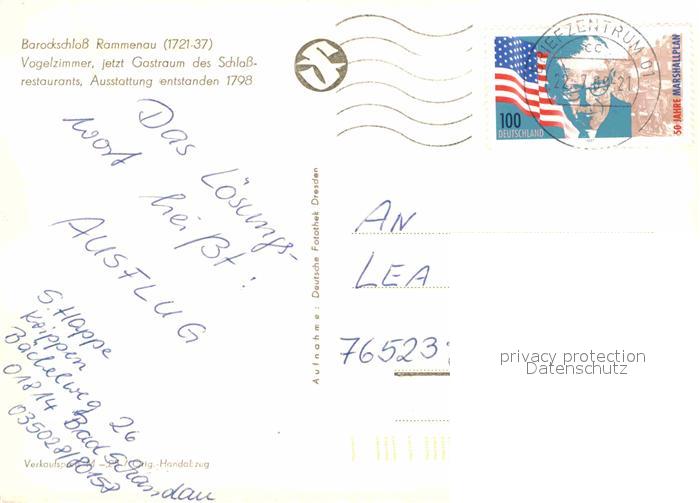 72755575 alte Postkarte Rammenau Barockschloss Vogelzimmer postalisch gelaufen Erhaltung siehe scans [WerneD78] KatCode: 11110014272290