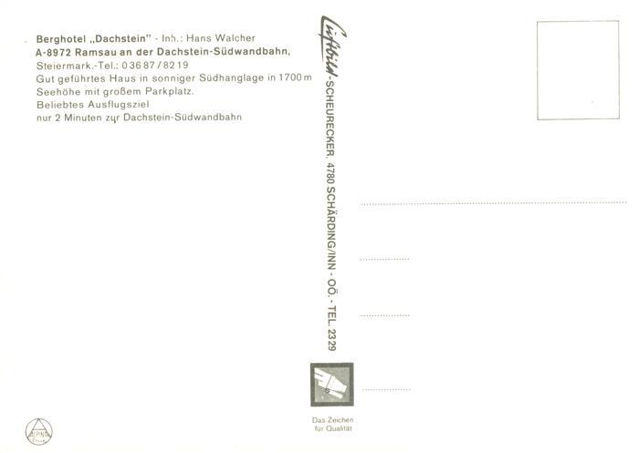 73906095 Ramsau am Dachstein Schladming Obersteiermark AT Hotel Dachstein postalisch nicht gelaufen Erhaltung siehe scans [WerneD78] KatCode: 11390222061242