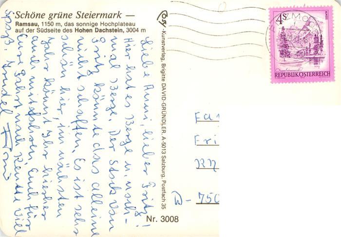 73923621 alte Postkarte Ramsau am Dachstein Schladming Obersteiermark AT Panorama mit Scheichenspitze postalisch gelaufen Erhaltung siehe scans [FriedD77] KatCode: 11390222061242
