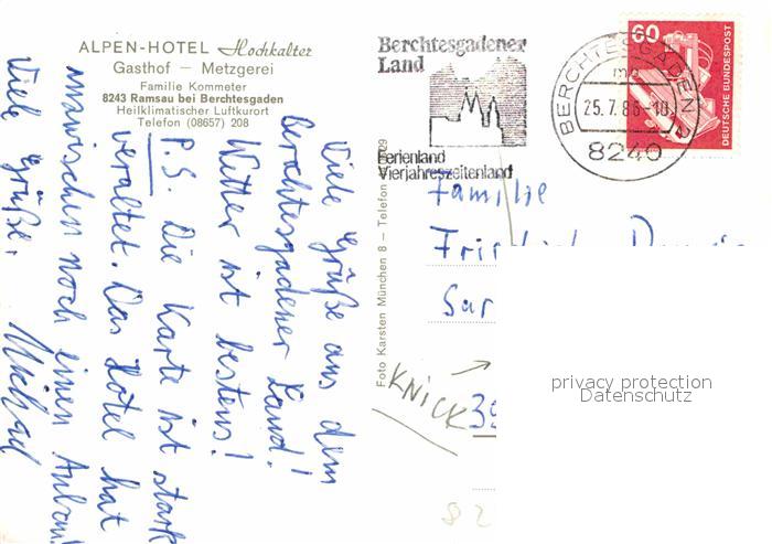 72750714 alte Postkarte Ramsau Berchtesgaden Alpenhotel Hochkalter postalisch gelaufen Erhaltung siehe scans [KathaD81] KatCode: 11110009172129