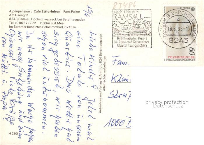 73108017 alte Postkarte Ramsau Berchtesgaden Alpenpension Cafe Ettlerlehen postalisch gelaufen Erhaltung siehe scans [KathaD81] KatCode: 11110009172129
