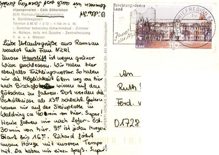 73915337 Ramsau Berchtesgaden Alpenpension Cafe Ettlerlehen postalisch gelaufen Erhaltung siehe scans [WerneD78] alte Postkarte Wern Katcode 11110009172129