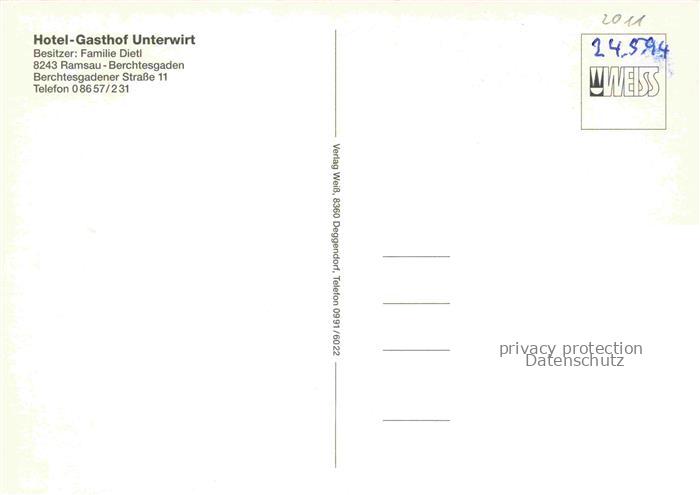 74084814 RAMSAU Berchtesgaden Bayern Hotel Gasthof Unterwirt Kirche Gastraum Fluss postalisch nicht gelaufen Erhaltung siehe scans [WerneD78] KatCode: 11110009172129