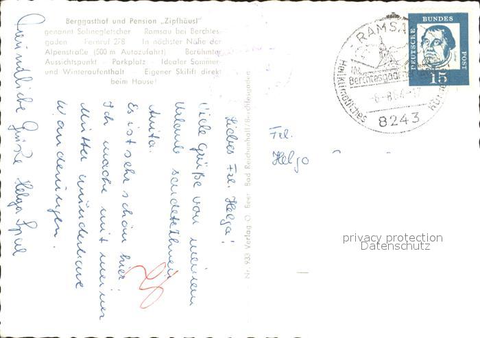71977289 alte Postkarte Ramsau Berchtesgaden Berggasthaus und Pension Zipfhaeusl mit Watzmann postalisch gelaufen Erhaltung siehe scans KatCode: 11110009172129