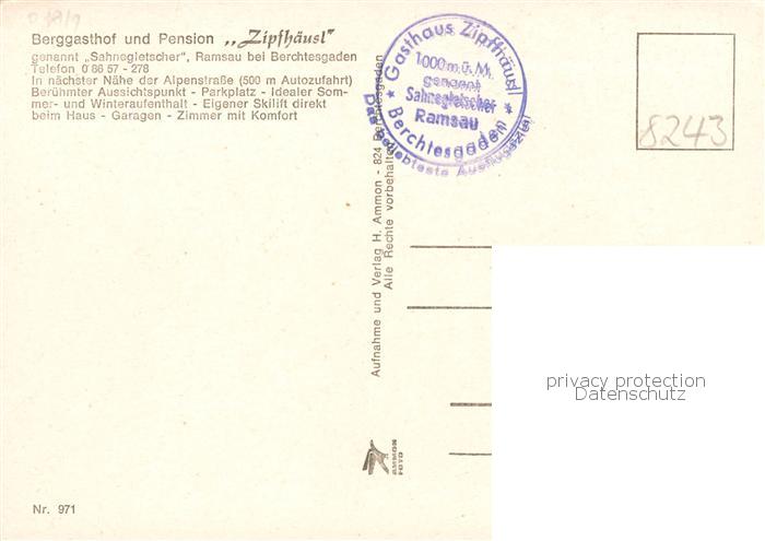 73868500 Ramsau Berchtesgaden Berggasthaus und Pension Zipfhaeusl postalisch nicht gelaufen Erhaltung siehe scans [WerneD78] Wern Katcode 11110009172129