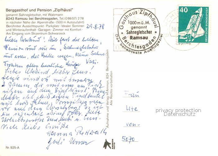 72856921 alte Postkarte Ramsau Berchtesgaden Berggasthof Pension Zipfhaeusel postalisch gelaufen Erhaltung siehe scans [AndreD76] KatCode: 11110009172129