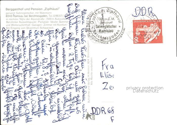71909131 alte Postkarte Ramsau Berchtesgaden Berggasthof Pension Zipfhaeusl postalisch gelaufen Erhaltung siehe scans KatCode: 11110009172129