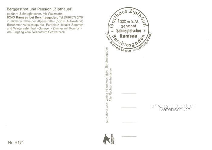 73167812 Ramsau Berchtesgaden Berggasthof Pension Zipfhaeusl postalisch nicht gelaufen Erhaltung siehe scans [LiesaD40] KatCode: 11110009172129