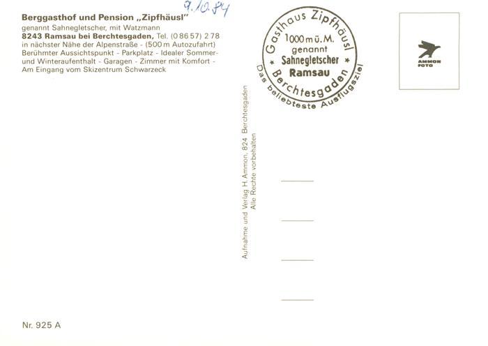 73925178 Ramsau Berchtesgaden Berggasthof Pension Zipfhaeusl Gaststube Panorama postalisch nicht gelaufen Erhaltung siehe scans [WerneD78] Wern Katcode 11110009172129