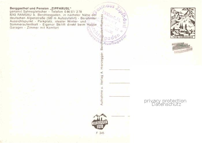 72905767 Ramsau Berchtesgaden Berggasthof Pension Zipfhaeusl Sahnegletscher postalisch nicht gelaufen Erhaltung siehe scans [FriedD77] KatCode: 11110009172129