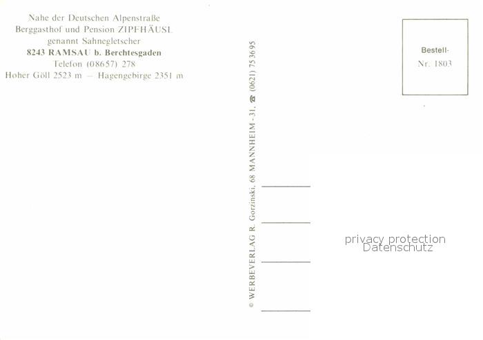 72860155 Ramsau Berchtesgaden Berggasthof Pension Zipfhaeusl Sahnegletscher Alpenpanorama Hoher Goell Hagengebirge postalisch nicht gelaufen Erhaltung siehe scans [FriedD77] KatCode: 11110009172129