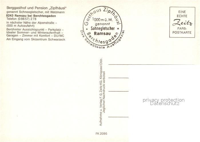 73543118 Ramsau Berchtesgaden Berggasthof Pension Zipfhaeusl Sahnegletscher Restaurant Watzmann Berchtesgadener Alpen postalisch nicht gelaufen Erhaltung siehe scans [FriedD77] KatCode: 11110009172129