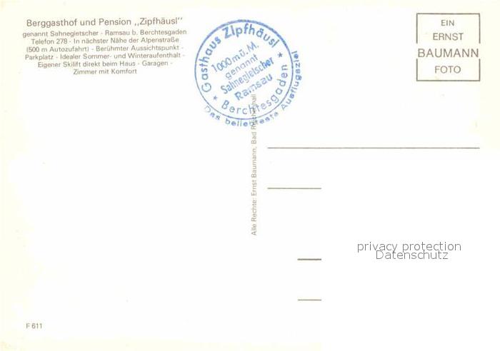 72900328 Ramsau Berchtesgaden Berggasthof Zipfhaeusl postalisch nicht gelaufen Erhaltung siehe scans [FriedD77] KatCode: 11110009172129
