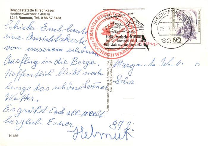73900797 Ramsau Berchtesgaden Berggaststaette Hirschkaser Gatraeume Terrasse postalisch gelaufen Erhaltung siehe scans [WerneD78] alte Postkarte Wern Katcode 11110009172129