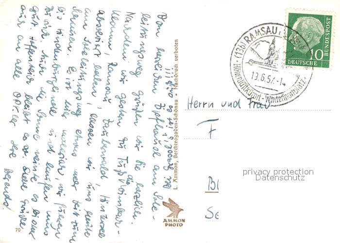 72885902 alte Postkarte Ramsau Berchtesgaden Blick vom Soleleitungsweg mit Hochkalter und Reiteralpe Alpen postalisch gelaufen Erhaltung siehe scans [FriedD77] KatCode: 11110009172129