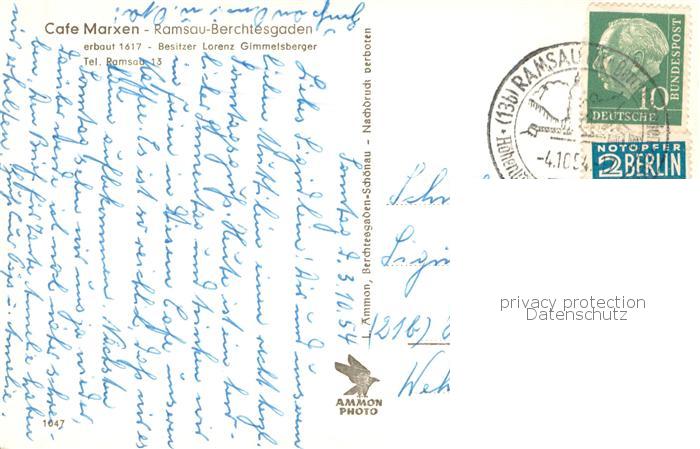 73762665 alte Postkarte Ramsau Berchtesgaden Cafe Marxen postalisch gelaufen Erhaltung siehe scans [FriedD77] KatCode: 11110009172129