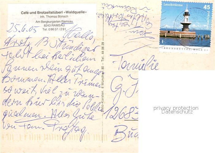 73859780 Ramsau Berchtesgaden Cafe und Brotzeitstüberl Waldquelle postalisch gelaufen Erhaltung siehe scans [WerneD78] alte Postkarte Wern Katcode 11110009172129