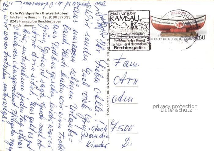 alte Postkarte Ramsau Berchtesgaden Cafe Waldquelle Brotzeitstueberl postalisch gelaufen Erhaltung siehe scans