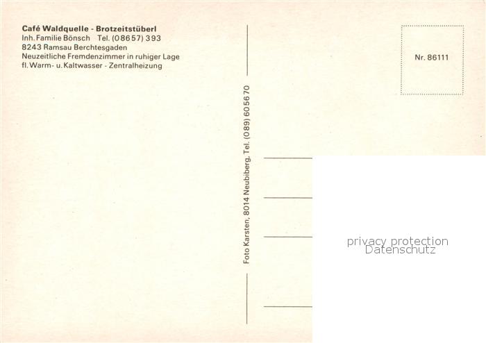 73641184 Ramsau Berchtesgaden Cafe Waldquelle Brotzeitstueberl Cafe Garten postalisch nicht gelaufen Erhaltung siehe scans [WerneD78] KatCode: 11110009172129