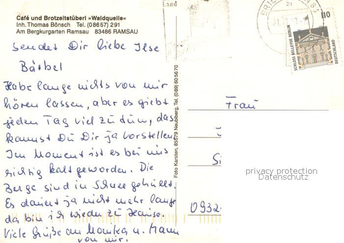 73715973 alte Postkarte Ramsau Berchtesgaden Cafe Waldquelle Maerchengarten Terrasse postalisch gelaufen Erhaltung siehe scans [WerneD78] KatCode: 11110009172129