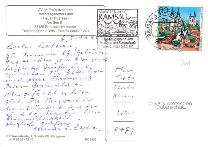 72976119 alte Postkarte Ramsau Berchtesgaden CVJM-Freizeitzentrum postalisch gelaufen Erhaltung siehe scans [LiesaD40] KatCode: 11110009172129