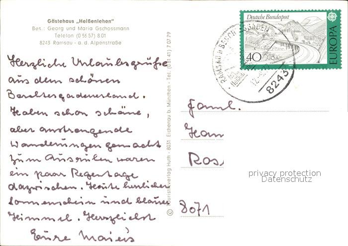 72063088 alte Postkarte Ramsau Berchtesgaden Gaestehaus Heissenlehen postalisch gelaufen Erhaltung siehe scans KatCode: 11110009172129