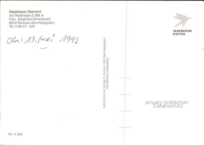 72568534 Ramsau Berchtesgaden Gaestehaus Oberwirt Reiteralpe postalisch nicht gelaufen Erhaltung siehe scans [KathaD79] KatCode: 11110009172129