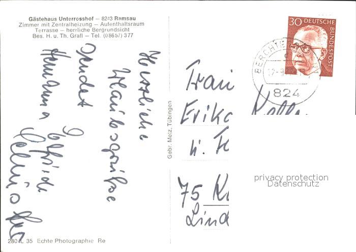 72104670 alte Postkarte Ramsau Berchtesgaden Gaestehaus Unterrosshof postalisch gelaufen Erhaltung siehe scans KatCode: 11110009172129