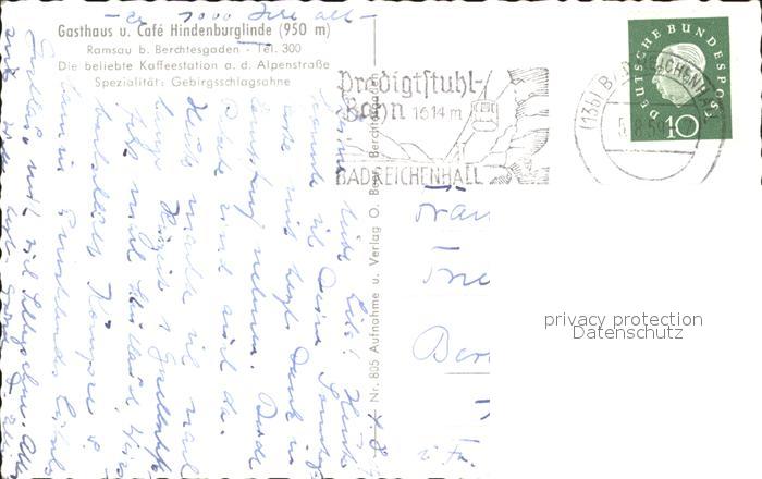 71901122 alte Postkarte Ramsau Berchtesgaden Gasthaus Cafe Hindenburglinde postalisch gelaufen Erhaltung siehe scans KatCode: 11110009172129