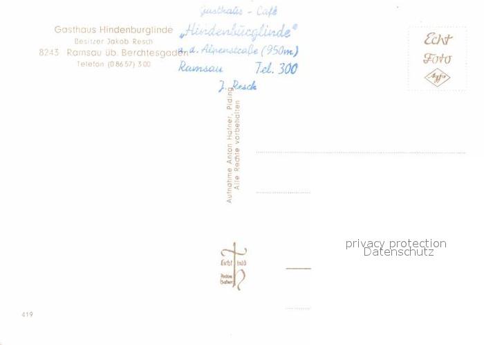 72691495 Ramsau Berchtesgaden Gasthaus Hindenburglinde an der Alpenstrasse mit Reiteralpe postalisch nicht gelaufen Erhaltung siehe scans [LiesaD40] KatCode: 11110009172129