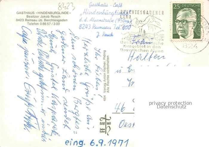 74049307 alte Postkarte Ramsau Berchtesgaden Gasthaus Hindenburglinde postalisch gelaufen Erhaltung siehe scans [FriedD77] KatCode: 11110009172129
