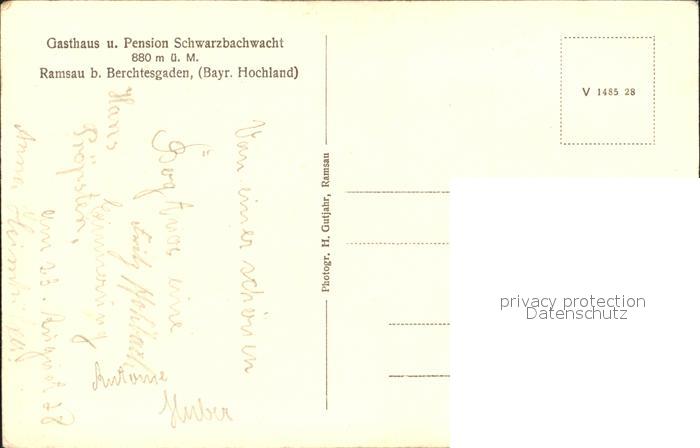72143985 Ramsau Berchtesgaden Gasthaus Pension Schwarzbachwacht postalisch nicht gelaufen Erhaltung siehe scans KatCode: 11110009172129