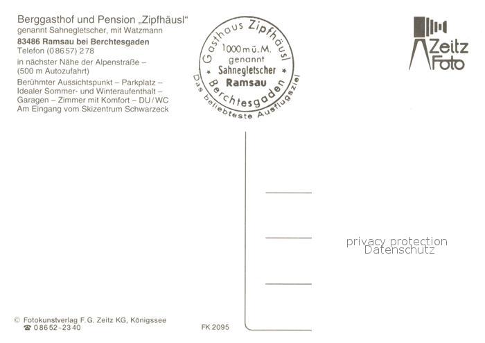 73107207 Ramsau Berchtesgaden Gasthaus Pension Zipfhaeusl Watzmann postalisch nicht gelaufen Erhaltung siehe scans [KathaD81] KatCode: 11110009172129