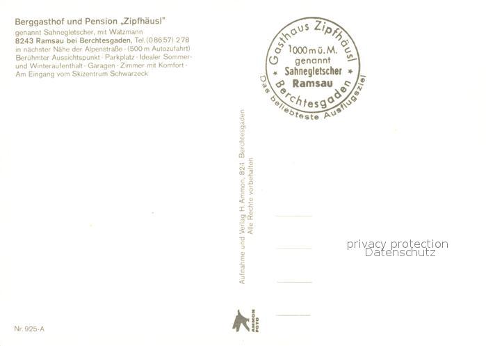 73081903 Ramsau Berchtesgaden GasthausPension Zipfhaeusl postalisch nicht gelaufen Erhaltung siehe scans [LiesaD40] KatCode: 11110009172129