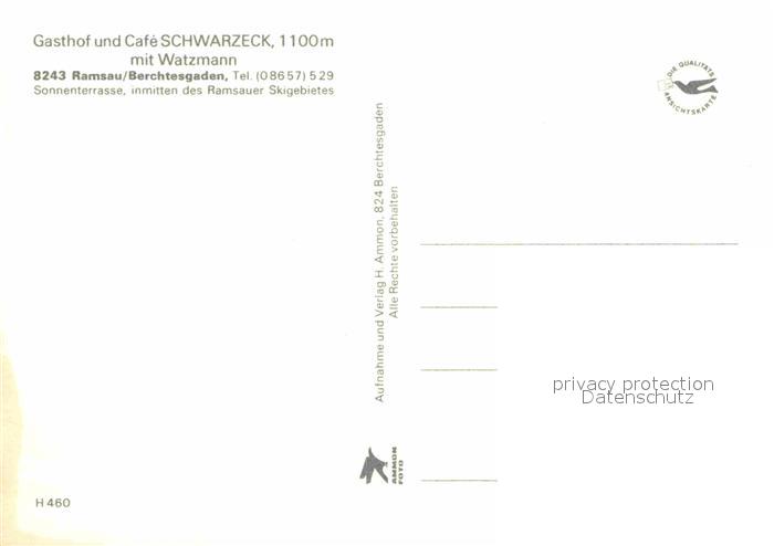 72709374 Ramsau Berchtesgaden Gasthof Cafe Schwarzeck mit Watzmann Berchtesgadener Alpen postalisch nicht gelaufen Erhaltung siehe scans [FriedD77] KatCode: 11110009172129