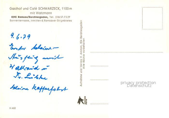 73174038 Ramsau Berchtesgaden Gasthof Cafe Schwarzeck mit Watzmann Berchtesgadener Alpen postalisch nicht gelaufen Erhaltung siehe scans [FriedD77] KatCode: 11110009172129
