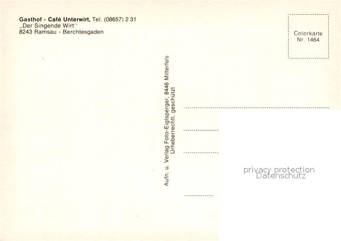 73739297 Ramsau Berchtesgaden Gasthof Cafe Unterwirt Gastraeume Terrasse postalisch nicht gelaufen Erhaltung siehe scans [WerneD78] KatCode: 11110009172129