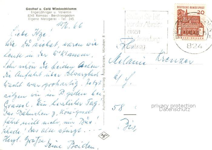 73641183 alte Postkarte Ramsau Berchtesgaden Gasthof Cafe Wimbachklamm postalisch gelaufen Erhaltung siehe scans [WerneD78] KatCode: 11110009172129